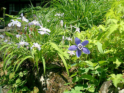 ![]() ヒメシャガ(左)とミヤマオダマキ(右) Iris gracilipes A.Gray(アヤメ科), Aquilegia flabellata Siebold et Zucc. var. pumila (Huth) Kudô(キンポウゲ科) ロックガーデン、2006.5.25.撮影 |