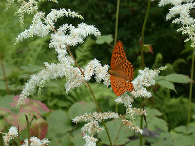 オニシモツケ Filipendula camtschatica (Pall.) Maxim.(バラ科) 本州中部以北~北海道、樺太・千島・カムチャッカにかけて生育します。時には高さが2mを越える大型多年生草本です。白色の花が多いのですが、たまに薄紅色のものも見られます。 [ボッグガーデン 07.07.02 撮影] |
