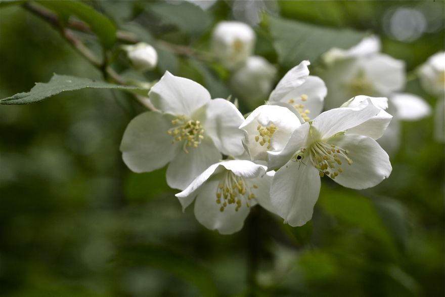 [ボックガーデン裏 09.06.02 撮影]Philadelphus tomentosus Wall.(ユキノシタ科) ヒマラヤ原産のバイカウツギの仲間です。和名はないようです。中国名は毛山梅花。 バイカウツギよりも大きな花をつけるので、見応えがあります。石標6番と70の間にあります。 |