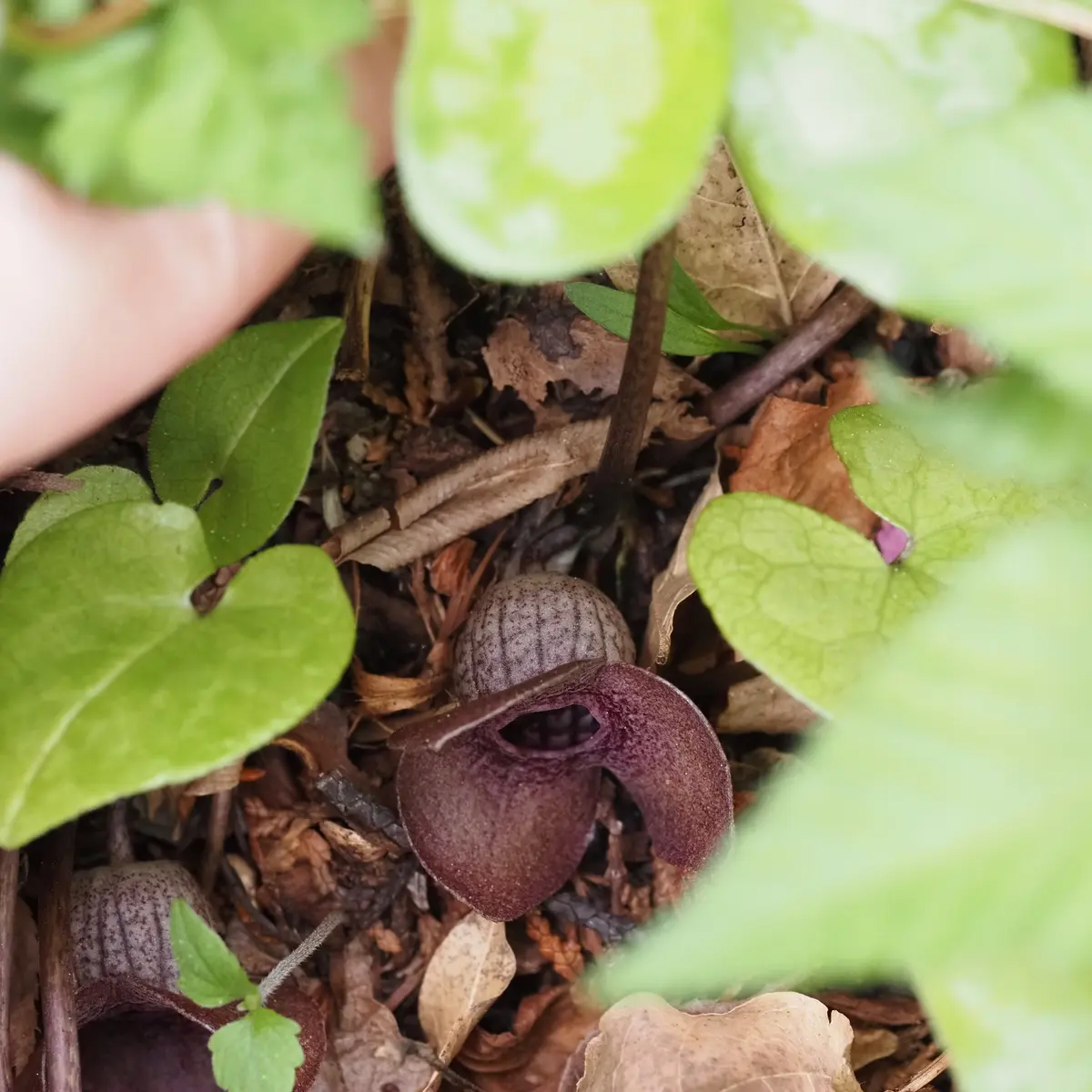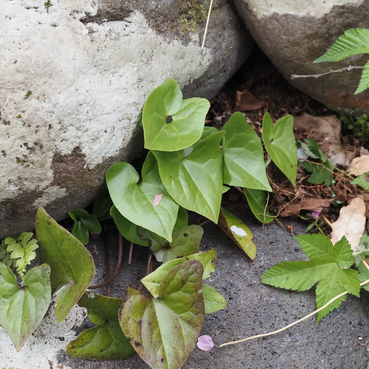 三宮ロックの石標22番側に数株が植栽されているのを確認しました。カンアオイの仲間であることは確定ですが、この仲間は変異が多く確認中です(葉の形や花の形態、過去の植栽記録から一旦ランヨウアオイとしました)。同属の仲間にはウスバサイシンやフタバアオイがあります。