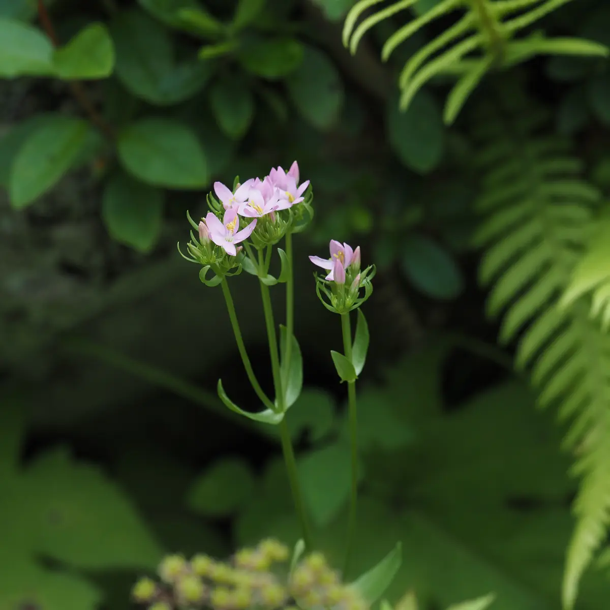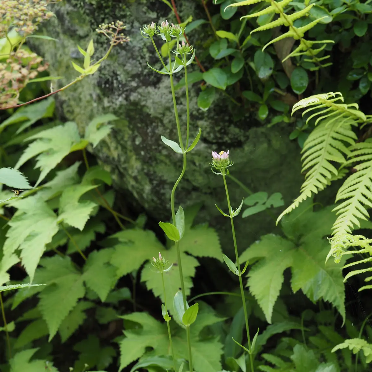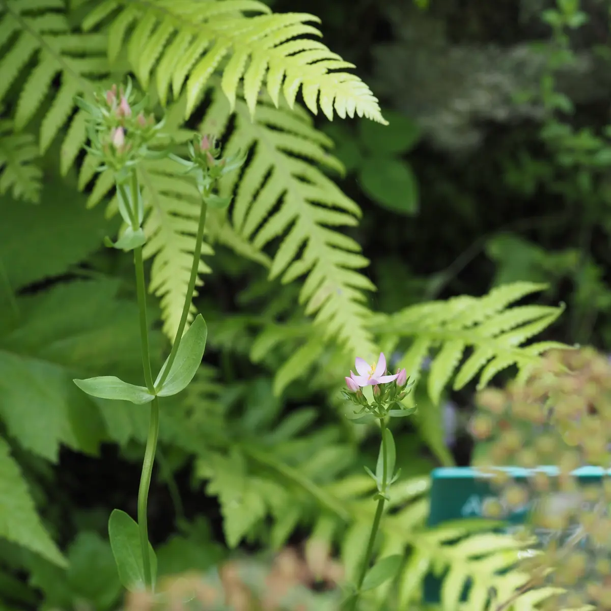ロックガーデンに見慣れないオトギリソウのような姿のピンク色の花が咲いていました。ヨーロッパ原産の外来種です。どこからか種が紛れ込んだようです。