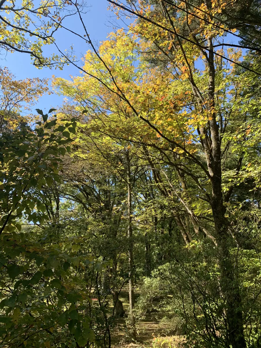 黄葉。手前はイタヤカエデとカジカエデ[コナラ林内(石標2番付近) 2025年10月30日 撮影]
