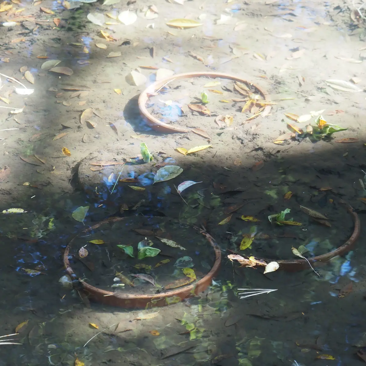 ロックガーデン東の池に双苞品種を展示(2025秋)[ミズバショウ池 2025年10月27日 撮影]