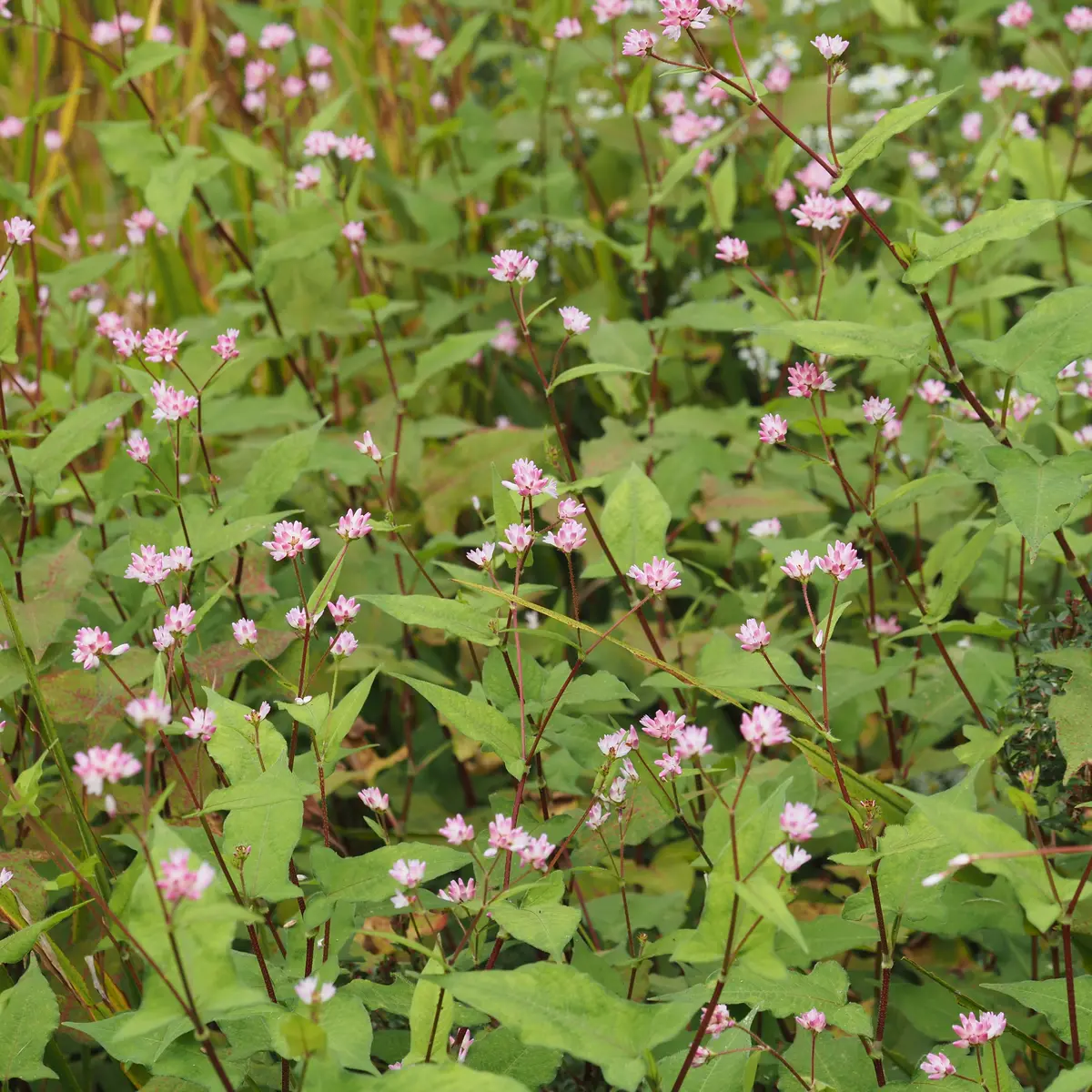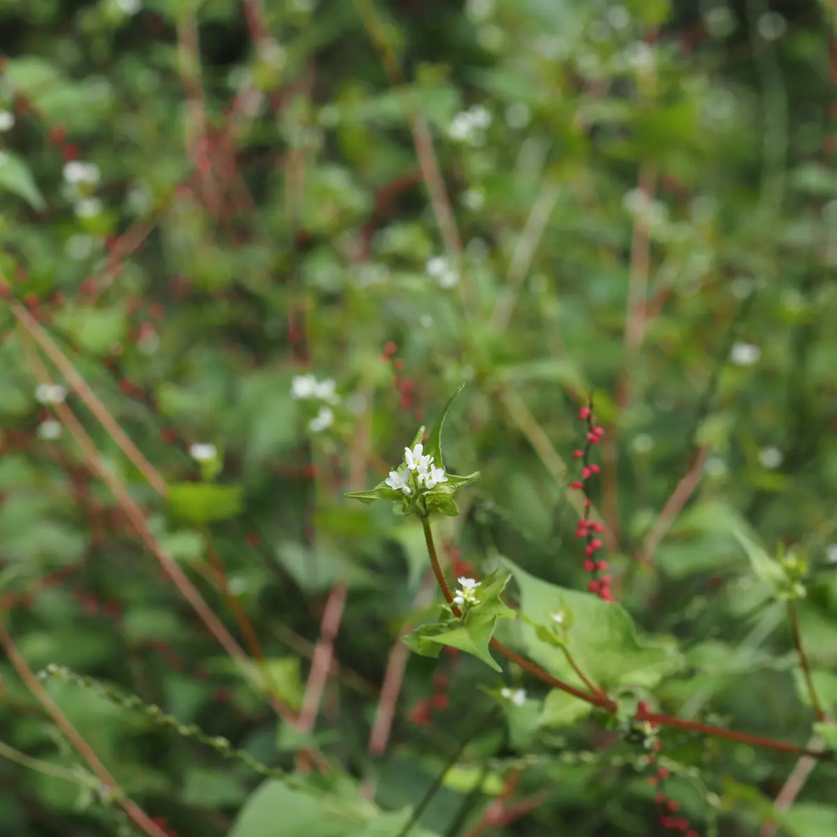 ミゾソバの変種で、花は小さく白色、葉柄に翼が無いなどの特徴があります。ミゾソバよりも明るい乾燥したところを好むようです。ミヤマタニソバにも似ますが、本種は茎に毛が多いことや、花が固まって咲くことなどで見分けられます。