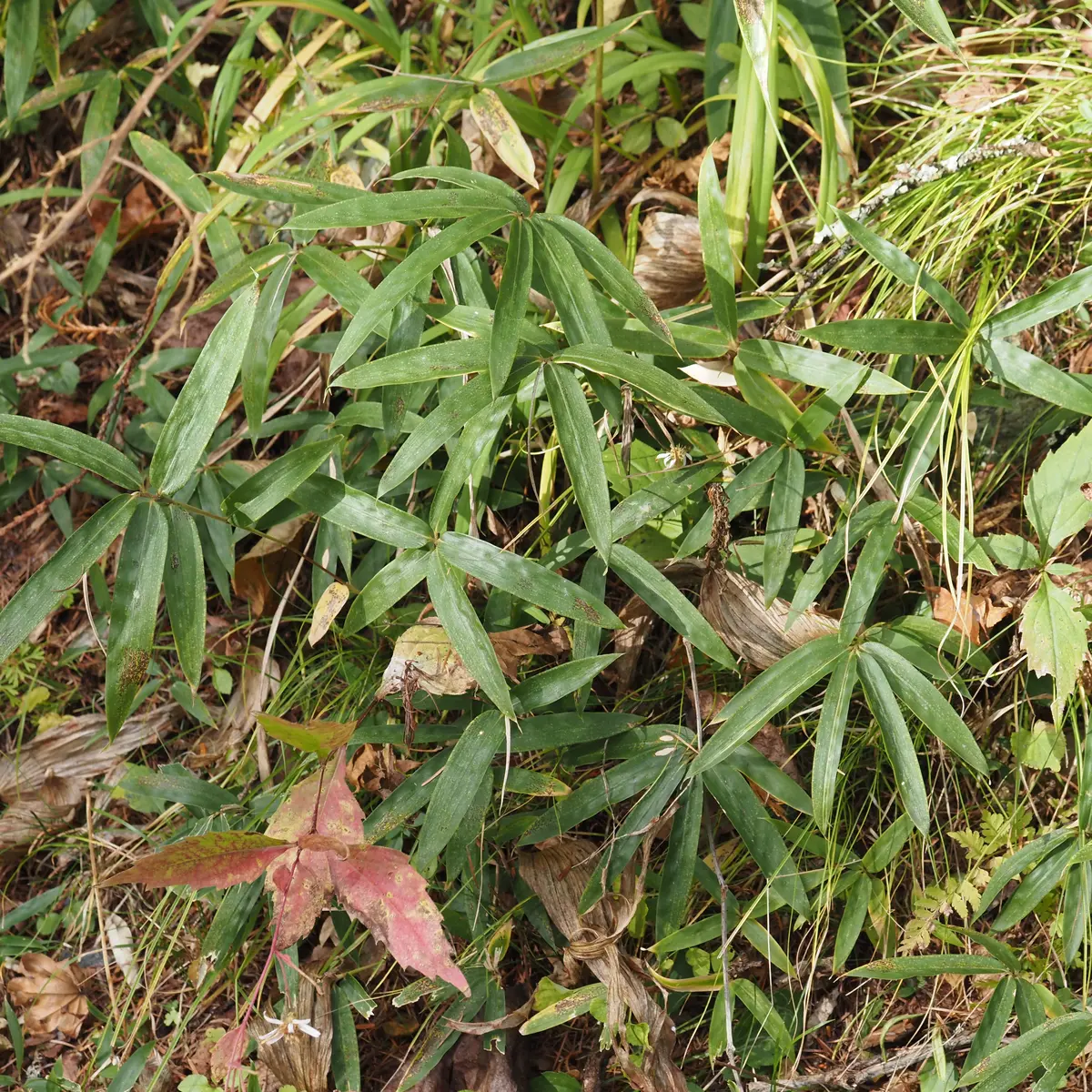 園内各所に広がっています。他の植物保護のため刈払等を行っています。シカの被食や刈払が無ければ2m以上まで伸びるようです。