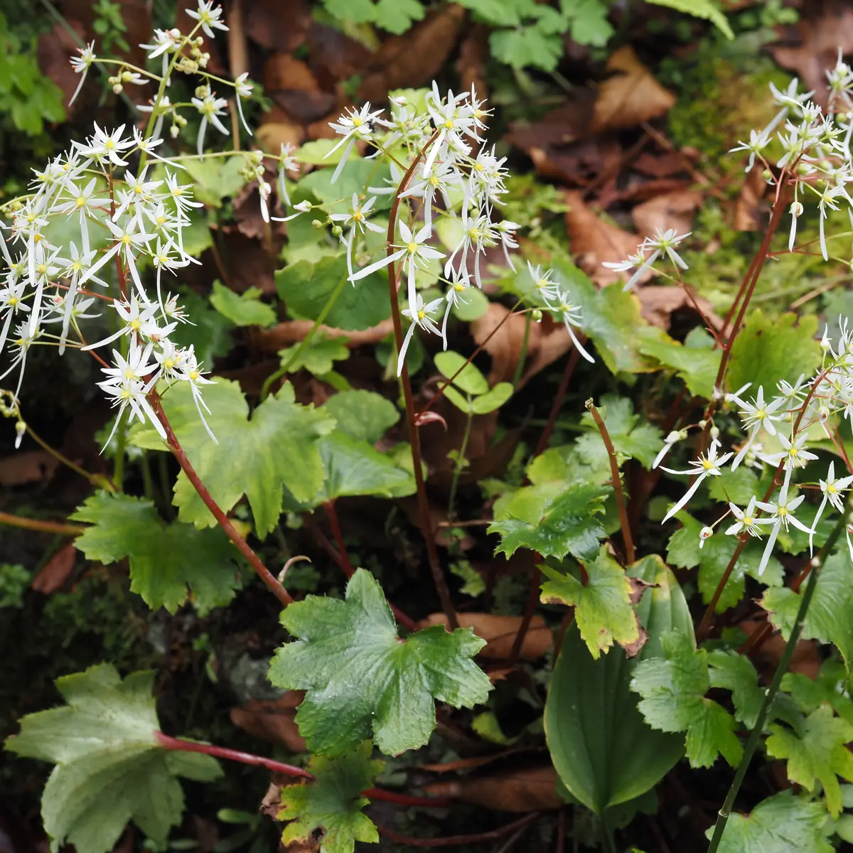 ロックガーデンの岩の隙間に生える植物で、秋のロックガーデンを賑やかせてくれます。冬期閉園まで咲く遅咲きの花の1種です。同属のユキノシタとよく似ていますが、花期が大きく異なります。
