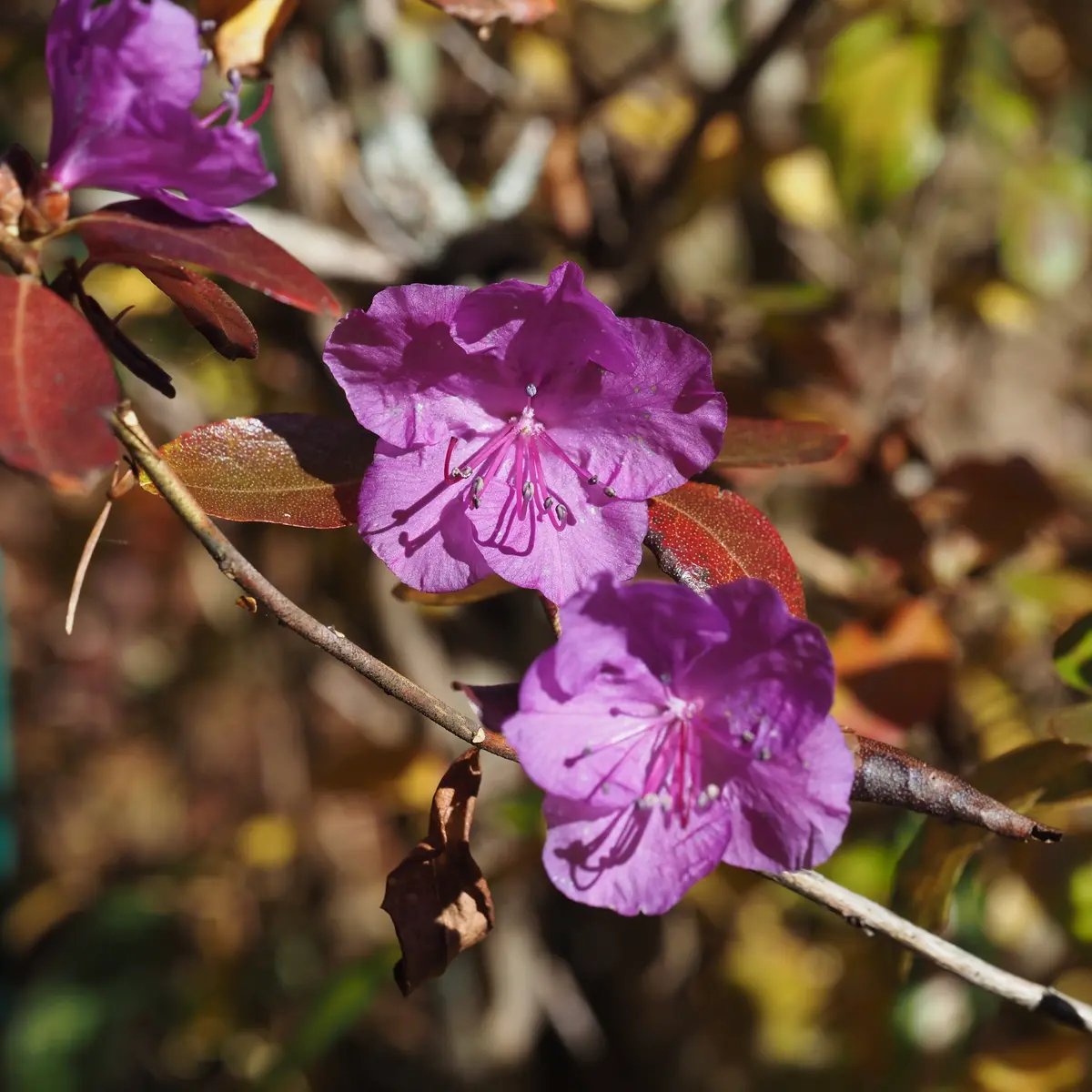 ロックガーデン(庁舎正面・やや南寄り高台)に1株植栽されています。当園の個体は春と秋の2度開花し、春はツツジの中で最初に開花し、秋は閉園期間まで開花します。国内にはごく限られた場所にしか自生せず、殆んどは栽培です。より広範囲に自生するゲンカイツツジは本種の変種です。
